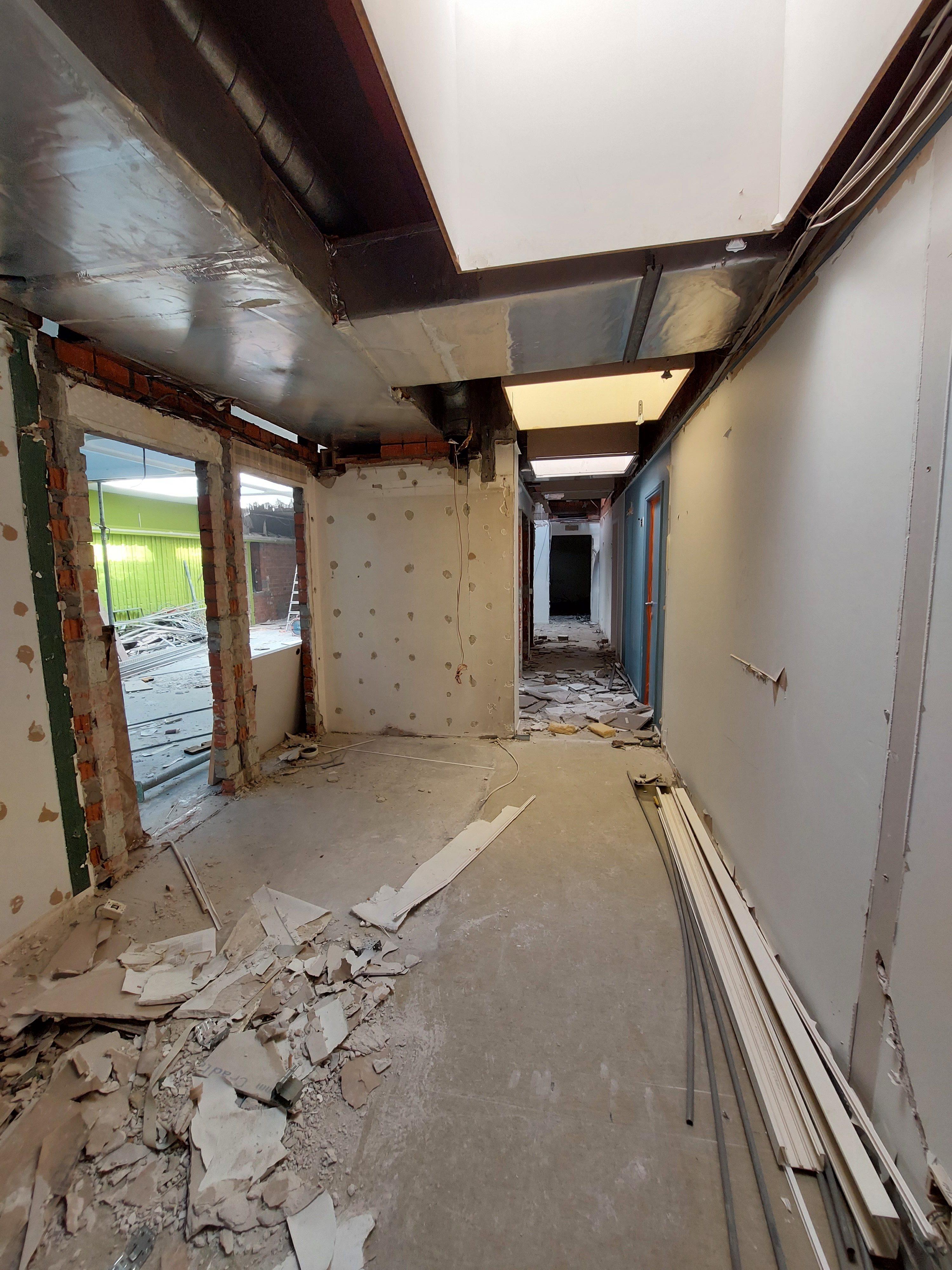 Tijdens deze fases starten we met afbraakwerken op het gelijkvloers. Met deze werken zorgen we voor optimale toegankelijkheid, moderne en functionele ruimten met veel lichtinval, natuurlijke kleuren en rustgevende materialen die het fysieke, mentale en sociale welbevinden van de patiënten, arts-specialisten en medewerkers bevorderen.